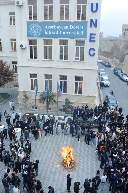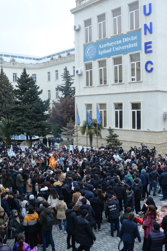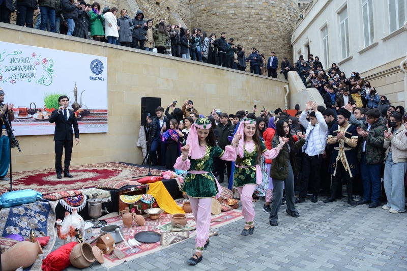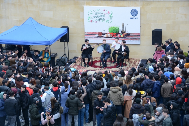 UNEC Həmkarlar İttifaqı Komitəsi, Tələbə Həmkarlar İttifaqı Komitəsi və Yaradıcılıq Mərkəzinin təşkilatçılığı ilə keçirilən bayram şənliyində tələbələrin Novruz atrubutlarına, adət-ənənələrinə həsr etdikləri rəsm əsərləri də nümayiş olunub. Tanınmış müğənnilərin ifaları, milli rəqslər və Novruz bayramının məşhur personajları olan kosa ilə keçəlin ifa etdikləri şeir, musiqi və bir-birindən maraqlı Novruz səhnəcikləri şənliyinə xüsusi rəng qatıb.