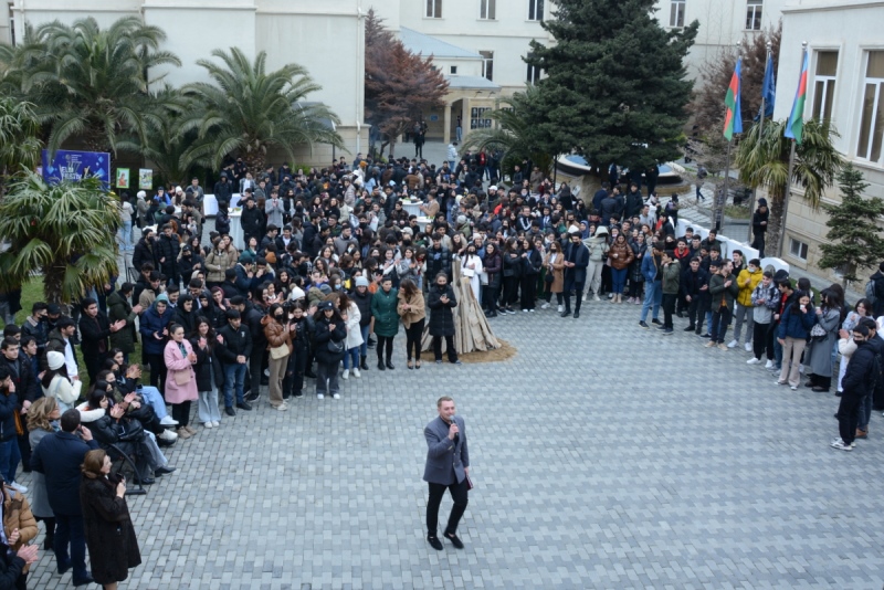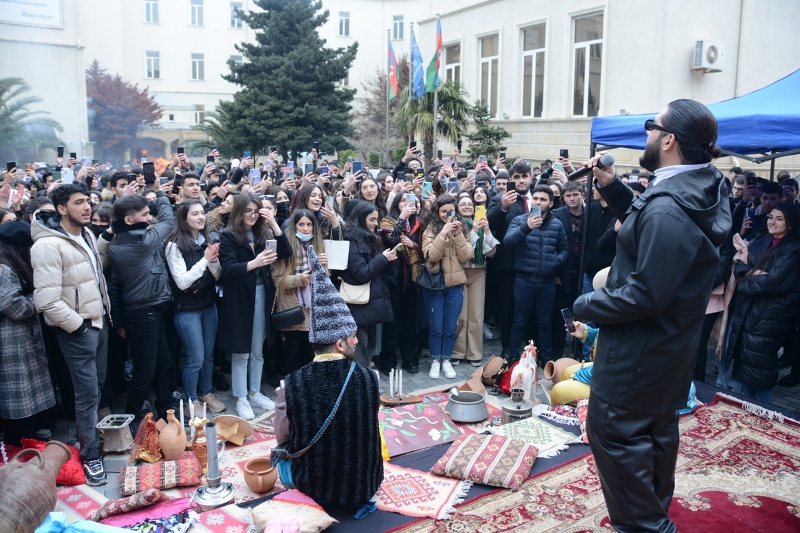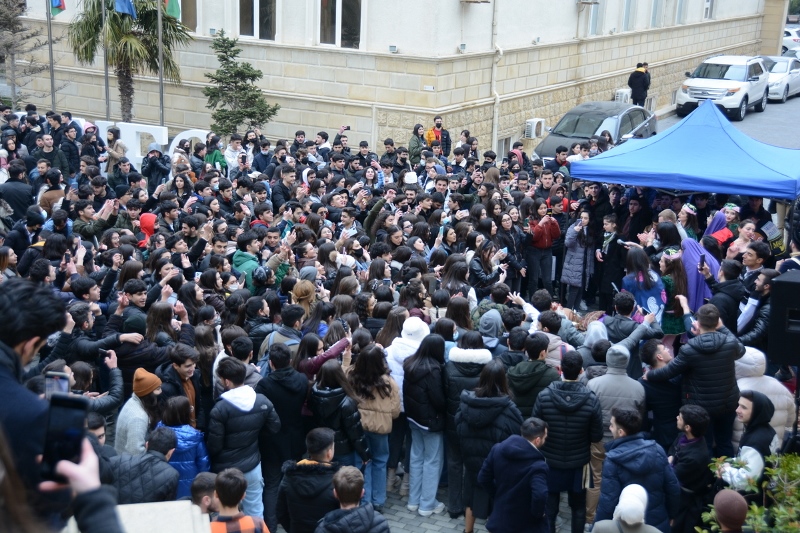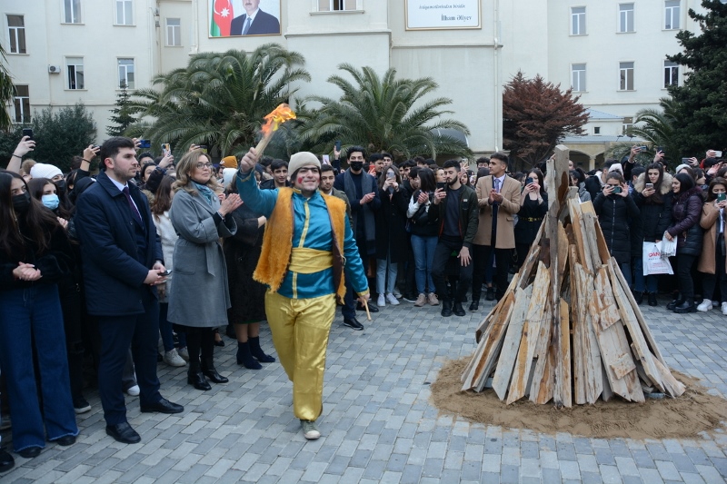 Xalqımızın mənəvi dəyərlərini, adət-ənənələrini özündə yaşadan Novruz şənliyinin açılışında çıxış edən tələbələrlə iş üzrə prorektor dosent Səadət Qəndilova universitetin kollektivini bolluq-bərəkət rəmzi sayılan Novruz bayramı münasibətilə təbrik edərək, onlara xoş arzularını çatdırıb.
