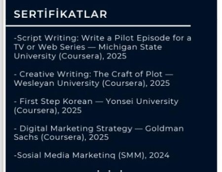 Uzun, darmadağın qara saçlarım, nə böyük, nə balaca olan burnum, sol yanağımda olan qara rəng, boyada duran baxışlarım ən son gözlərimə ilişdi. Və bir saniyə belə çəkmədən baxışlarımı qaçırıb qollarıma endirdim. Qollarımın müxtəlif yerlərində olan fırçanın buraxdığı boyaların izləri nə qədər silsəm də orada idi. Dodaqlarımdakı yarım gülüşün səbəbi olan rənglərdə gəzən gözlərim təkrar güzgüdəki mənlə qarşılaşdığında zehnimdə yenə eyni səs eşidildi. Və bu səslə birlikdə hər şey parçalandı.